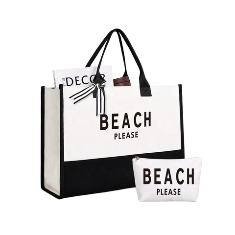Borsa Tote in tela bianca con Logo con stampa personalizzata in cotone grande con tasca e cerniera